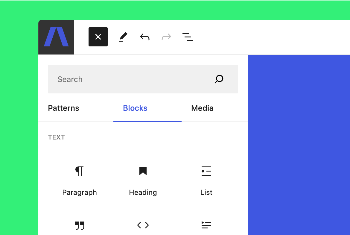 Blocks allow you to build your own custom posts and pages without any coding knowledge. Here’s a selection of the blocks included on this theme: